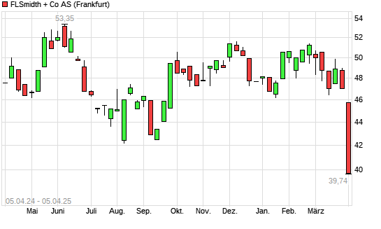 Mit dem Rücksetzer auf 39,74 EUR hat die FLSmidth-Aktie (ISIN DK0010234467) am 04.04.2025 ein neues 12-Monats-Tief erreicht und damit den Kurs vom 03.04.2025 eingestellt.