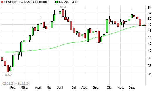 Mit dem Anstieg auf 48,02 EUR hat die FLSmidth-Aktie am 30.12.2024 die 200-Tage-Linie nach oben gekreuzt.