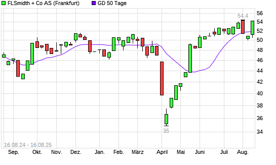 Mit dem Anstieg auf 54,20 EUR hat die FLSmidth-Aktie am 15.08.2025 die 50-Tage-Linie nach oben gekreuzt.