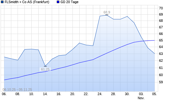 Mit dem Rücksetzer auf 63,90 EUR hat die FLSmidth-Aktie am 04.11.2025 die 20-Tage-Linie nach unten gekreuzt.