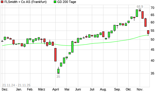 Mit dem Anstieg auf 53,35 EUR hat die FLSmidth-Aktie am 20.11.2025 die 200-Tage-Linie nach oben gekreuzt.Die FLSmidth-Aktie befand sich seit dem 18.11.2025 im langfristigen Abwärtstrend und ...weiterlesen
