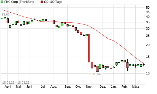 Mit dem Anstieg auf 12,79 EUR hat die FMC-Aktie am 17.03.2026 die 100-Tage-Linie nach oben gekreuzt.
