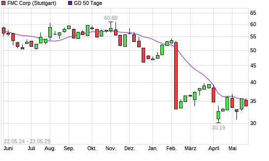 Mit dem Anstieg auf 35,48 EUR hat die FMC-Aktie am 21.05.2025 die 50-Tage-Linie nach oben gekreuzt.