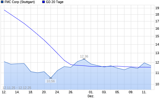 Mit dem Anstieg auf 12,00 EUR hat die FMC-Aktie am 11.12.2025 die 20-Tage-Linie nach oben gekreuzt.Die FMC-Aktie befindet sich seit dem 05.12.2024 im langfristigen Abwärtstrend und hat ...weiterlesen
