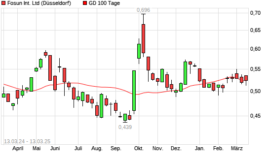 Mit dem Rücksetzer auf 0,52 EUR hat die FOSUN International-Aktie am 12.03.2025 die 100-Tage-Linie nach unten gekreuzt.