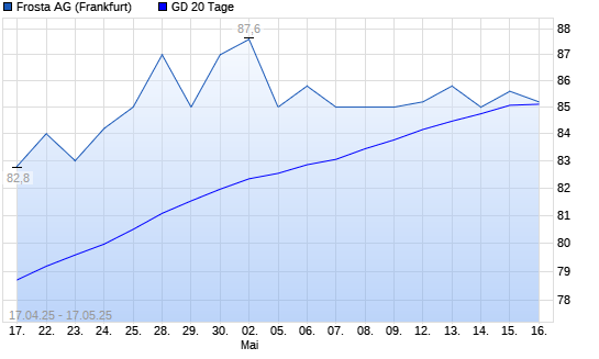 Mit dem Rücksetzer auf 85,20 EUR hat die FRoSTA-Aktie am 16.05.2025 die 20-Tage-Linie nach unten gekreuzt.