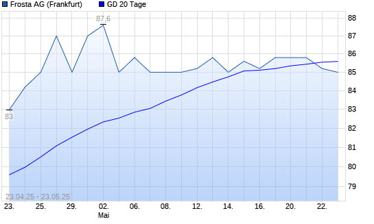 Mit dem Rücksetzer auf 85,20 EUR hat die FRoSTA-Aktie am 22.05.2025 die 20-Tage-Linie nach unten gekreuzt.Die FRoSTA-Aktie befindet sich seit dem 10.01.2025 im langfristigen Aufwärtstrend ...weiterlesen