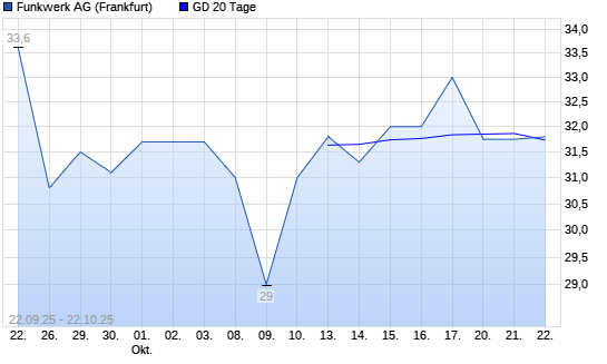 Mit dem Anstieg auf 31,75 EUR hat die Funkwerk-Aktie am 21.10.2025 die 20-Tage-Linie nach oben gekreuzt.Der Abstand zur 200-Tage-Linie beträgt aktuell +16,81%.