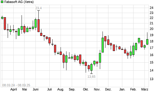 Mit dem Anstieg auf 19,00 EUR hat die Fabasoft-Aktie (ISIN AT0000785407) am 07.03.2025 ein neues 6-Monats-Hoch erreicht und damit den Kurs vom 18.11.2024 eingestellt.