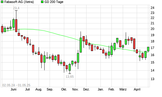 Mit dem Anstieg auf 16,55 EUR hat die Fabasoft-Aktie am 30.04.2025 die 200-Tage-Linie nach oben gekreuzt.