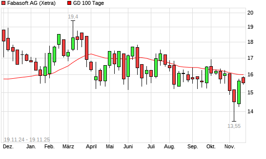 Mit dem Rücksetzer auf 15,70 EUR hat die Fabasoft-Aktie am 18.11.2025 die 100-Tage-Linie nach unten gekreuzt.