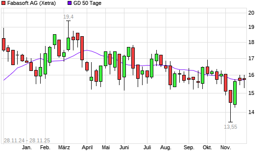 Mit dem Rücksetzer auf 15,60 EUR hat die Fabasoft-Aktie am 27.11.2025 die 50-Tage-Linie nach unten gekreuzt.