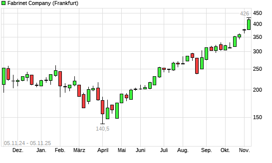 Mit dem Anstieg auf 415,30 EUR hat die Fabrinet-Aktie (ISIN KYG3323L1005) am 04.11.2025 ein neues All-Time-High erreicht und damit den Kurs vom 03.11.2025 eingestellt.