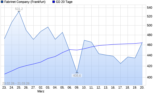 Mit dem Anstieg auf 465,30 EUR hat die Fabrinet-Aktie am 20.03.2026 die 20-Tage-Linie nach oben gekreuzt.