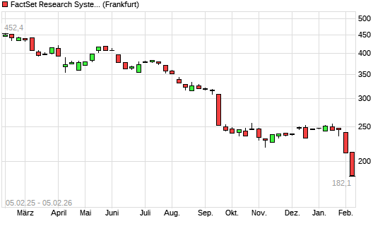 Mit dem Rücksetzer auf 186,90 EUR hat die Factset Research Systems-Aktie (ISIN US3030751057) am 04.02.2026 ein neues 5-Jahres-Tief erreicht und damit den Kurs vom 03.02.2026 eingestellt.