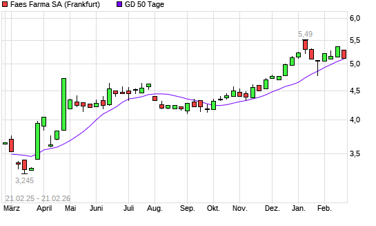 Mit dem Rücksetzer auf 5,12 EUR hat die Faes Farma-Aktie am 20.02.2026 die 50-Tage-Linie nach unten gekreuzt.