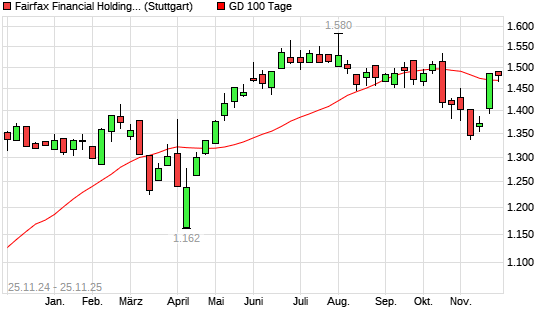 Mit dem Rücksetzer auf 1.466,00 EUR hat die Fairfax Financial-Aktie am 24.11.2025 die 100-Tage-Linie nach unten gekreuzt.