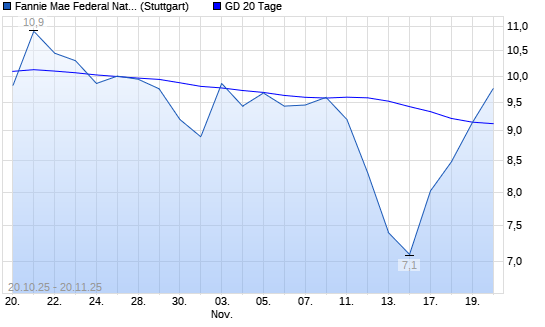 Mit dem Anstieg auf 9,38 EUR hat die Fannie Mae-Aktie am 19.11.2025 die 20-Tage-Linie nach oben gekreuzt.