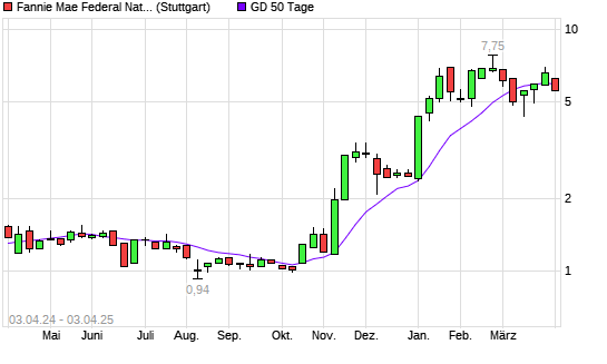 Mit dem Anstieg auf 6,10 EUR hat die Fannie Mae-Aktie am 02.04.2025 die 50-Tage-Linie nach oben gekreuzt.