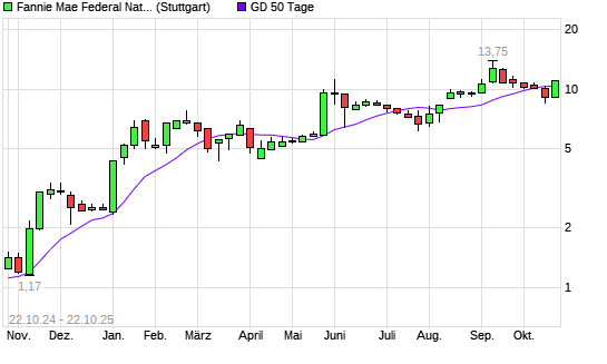 Mit dem Anstieg auf 10,70 EUR hat die Fannie Mae-Aktie am 21.10.2025 die 50-Tage-Linie nach oben gekreuzt.
