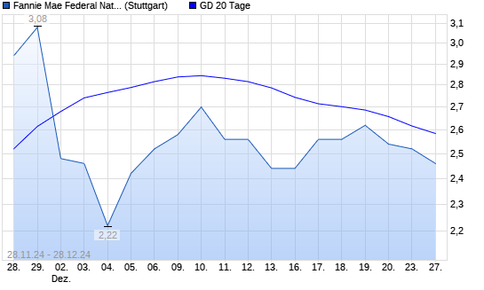 Mit dem Rücksetzer auf 2,50 EUR hat die Fannie Mae-Aktie am 27.12.2024 die 20-Tage-Linie nach unten gekreuzt.