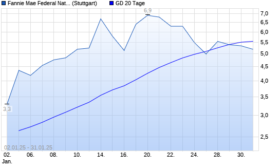 Mit dem Rücksetzer auf 5,55 EUR hat die Fannie Mae-Aktie am 30.01.2025 die 20-Tage-Linie nach unten gekreuzt.