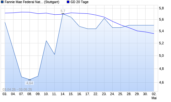 Mit dem Rücksetzer auf 5,38 EUR hat die Fannie Mae-Aktie am 02.05.2025 die 20-Tage-Linie nach unten gekreuzt.