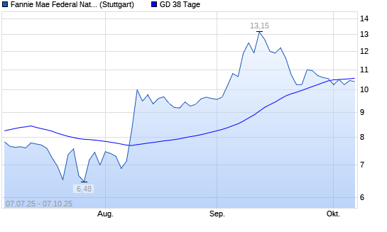 Mit dem Rücksetzer auf 10,60 EUR hat die Fannie Mae-Aktie am 06.10.2025 die 38-Tage-Linie nach unten gekreuzt.