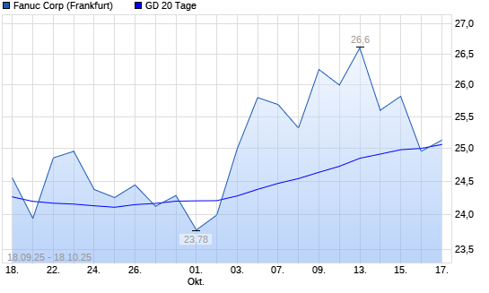 Mit dem Anstieg auf 25,13 EUR hat die Fanuc-Aktie am 17.10.2025 die 20-Tage-Linie nach oben gekreuzt.