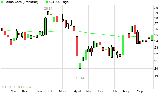 Mit dem Anstieg auf 25,00 EUR hat die Fanuc-Aktie am 03.10.2025 die 200-Tage-Linie nach oben gekreuzt.