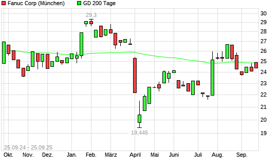 Mit dem Rücksetzer auf 24,38 EUR hat die Fanuc-Aktie am 24.09.2025 die 200-Tage-Linie nach unten gekreuzt.