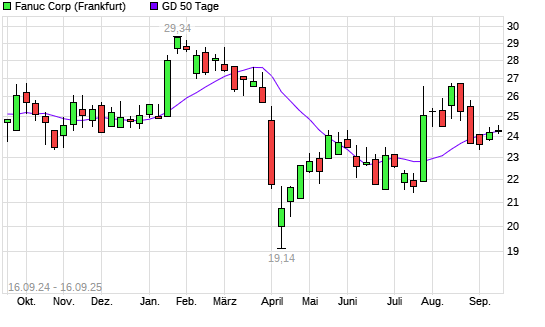Mit dem Rücksetzer auf 24,15 EUR hat die Fanuc-Aktie am 15.09.2025 die 50-Tage-Linie nach unten gekreuzt.