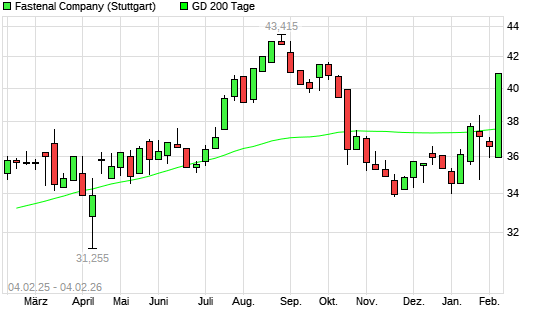 Mit dem Anstieg auf 38,07 EUR hat die Fastenal-Aktie am 03.02.2026 die 200-Tage-Linie nach oben gekreuzt.