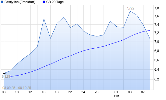 Mit dem Rücksetzer auf 6,99 EUR hat die Fastly-Aktie am 07.10.2025 die 20-Tage-Linie nach unten gekreuzt.