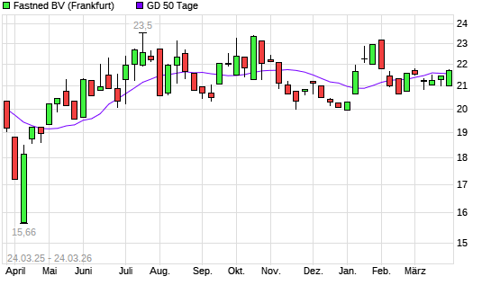 Mit dem Anstieg auf 21,75 EUR hat die Fastned-Aktie am 23.03.2026 die 50-Tage-Linie nach oben gekreuzt.