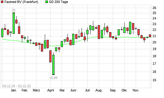 Mit dem Rücksetzer auf 20,80 EUR hat die Fastned-Aktie am 02.12.2025 die 200-Tage-Linie nach unten gekreuzt.