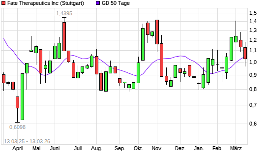 Mit dem Rücksetzer auf 1,01 EUR hat die Fate Therapeutics-Aktie am 12.03.2026 die 50-Tage-Linie nach unten gekreuzt.