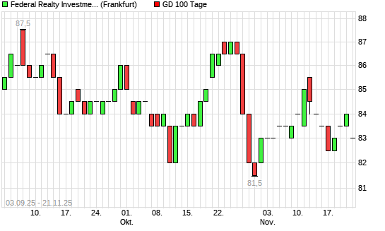 Mit dem Anstieg auf 83,00 EUR hat die Federal Realty Investment Trust-Aktie am 20.11.2025 die 100-Tage-Linie nach oben gekreuzt.