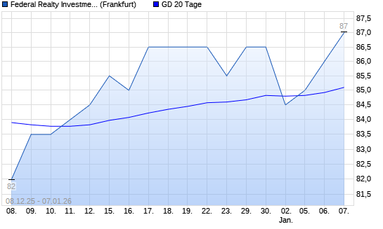 Mit dem Anstieg auf 86,00 EUR hat die Federal Realty Investment Trust-Aktie am 06.01.2026 die 20-Tage-Linie nach oben gekreuzt.