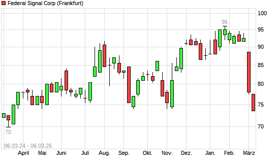 Mit dem Rücksetzer auf 73,50 EUR hat die Federal Signal Corporation-Aktie (ISIN US3138551086) am 05.03.2025 ein neues 6-Monats-Tief erreicht und damit den Kurs vom 11.09.2024 eingestellt.
