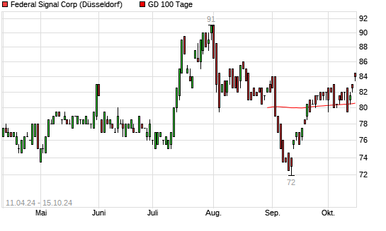 Mit dem Anstieg auf 84,00 EUR hat die Federal Signal Corporation-Aktie am 14.10.2024 die 100-Tage-Linie nach oben gekreuzt.