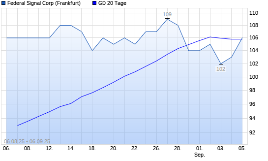 Mit dem Anstieg auf 106,00 EUR hat die Federal Signal Corporation-Aktie am 05.09.2025 die 20-Tage-Linie nach oben gekreuzt.