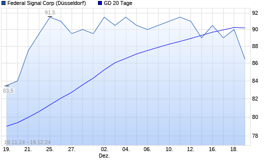 Mit dem Rücksetzer auf 90,00 EUR hat die Federal Signal Corporation-Aktie am 18.12.2024 die 20-Tage-Linie nach unten gekreuzt.