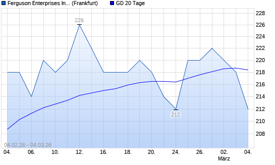 Mit dem Rücksetzer auf 218,00 EUR hat die Ferguson Enterprises-Aktie am 03.03.2026 die 20-Tage-Linie nach unten gekreuzt.