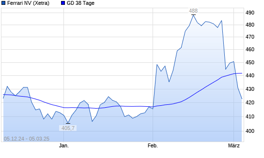 Mit dem Rücksetzer auf 435,20 EUR hat die Ferrari-Aktie am 04.03.2025 die 38-Tage-Linie nach unten gekreuzt.