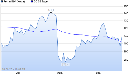 Mit dem Rücksetzer auf 394,90 EUR hat die Ferrari-Aktie am 17.09.2025 die 38-Tage-Linie nach unten gekreuzt.