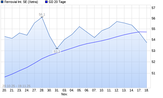 Mit dem Rücksetzer auf 53,34 EUR hat die Ferrovial-Aktie am 18.11.2025 die 20-Tage-Linie nach unten gekreuzt.