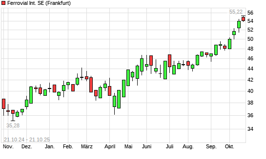 Mit dem Anstieg auf 54,14 EUR hat die Ferrovial-Aktie (ISIN NL0015001FS8) am 20.10.2025 ein neues All-Time-High erreicht und damit den Kurs vom 17.10.2025 eingestellt.Die Ferrovial-Aktie befindet ...weiterlesen