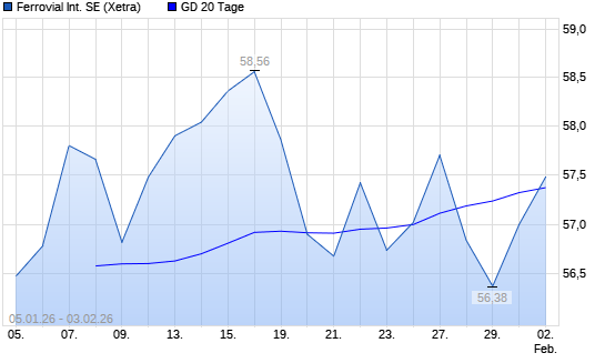 Mit dem Anstieg auf 57,20 EUR hat die Ferrovial-Aktie am 02.02.2026 die 20-Tage-Linie nach oben gekreuzt.Die Ferrovial-Aktie befindet sich seit dem 15.04.2025 im langfristigen Aufwärtstrend ...weiterlesen