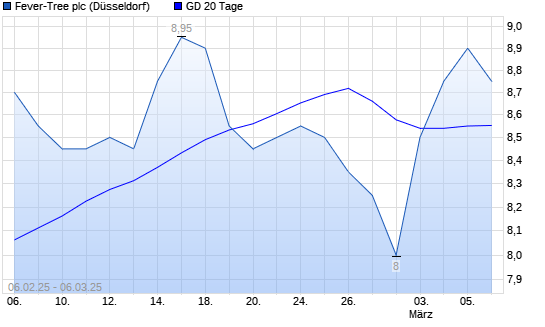 Mit dem Anstieg auf 8,60 EUR hat die Fever-Tree-Aktie am 05.03.2025 die 20-Tage-Linie nach oben gekreuzt.